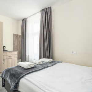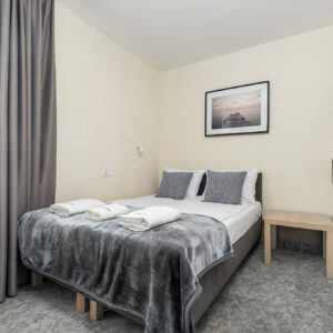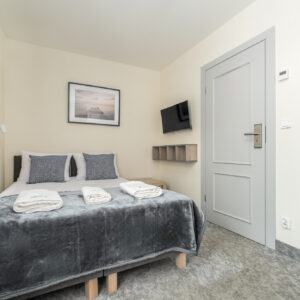 Funkcjonalny i estetycznie urządzony pokój dla dwóch osób, idealny na krótki pobyt nad morzem. Na 10 m² znajdziesz wszystko, co niezbędne do komfortowego odpoczynku w spokojnej atmosferze – to świetna opcja dla par lub osób ceniących wygodę i dobrą lokalizację w rozsądnej cenie.